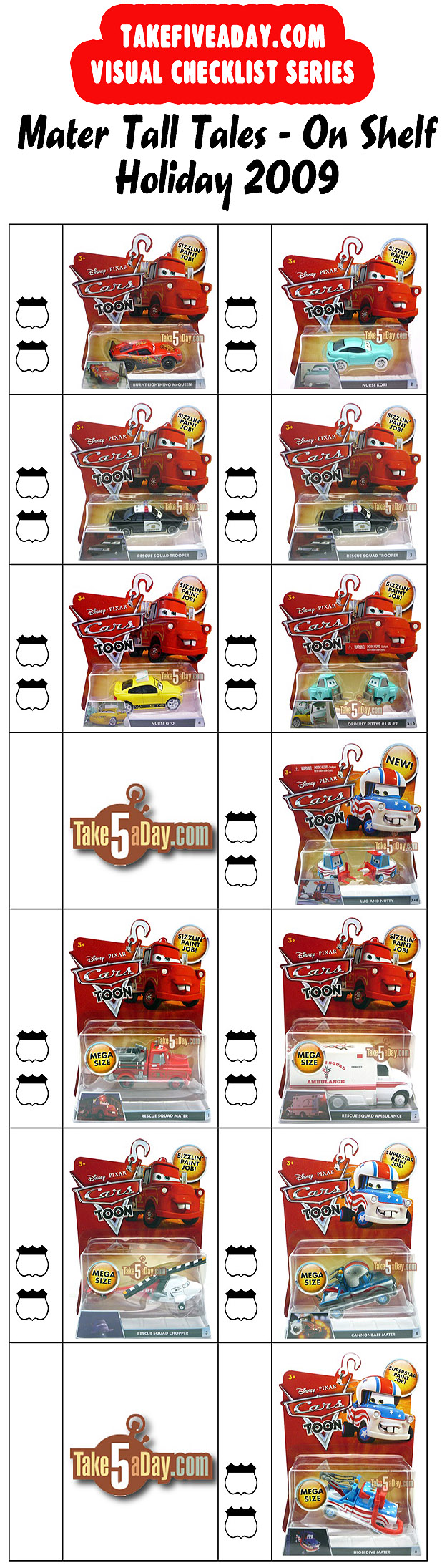 Mattel Disney Pixar Diecast CARS: Mater Tall Tales Singles 2009 Visual Checklist