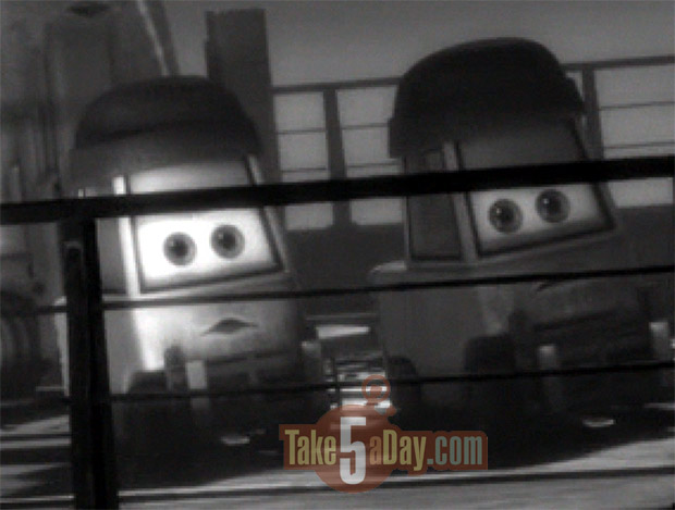 They’re sure to be black-and-white, except for the set that’s shown in color at the end (do the cynics among us wonder if that was a strategic scene?) I like the big forklift too…they do a nice job designing the big squared-off “utility” vehicles, and they translate well to 3-D…the crane (though he’s kind of small in the Ninja playset), Frank, etc.