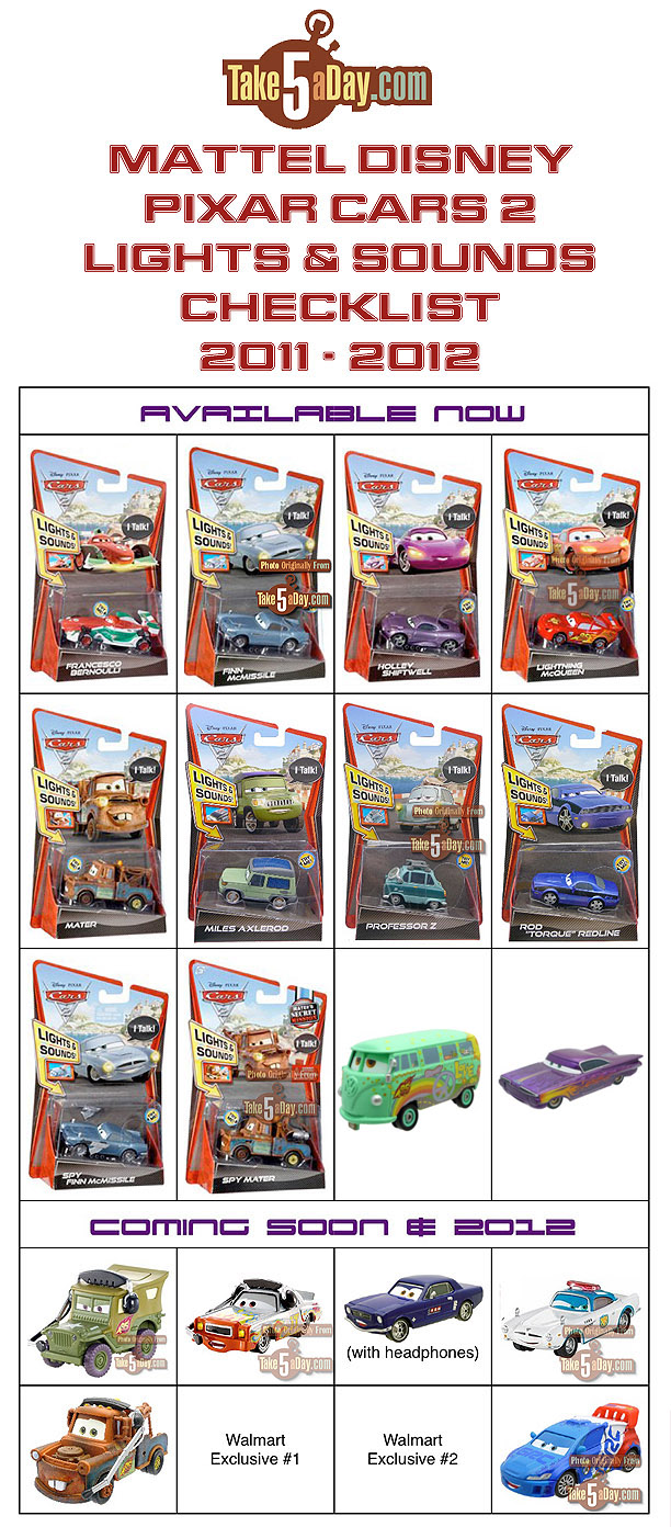 Mattel Disney Pixar Diecast CARS 2: Lights & Sounds 2011-2012 Checklist