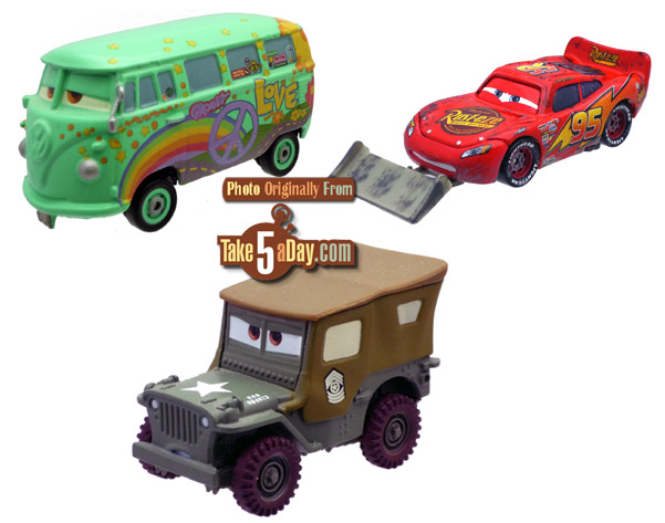 Of course, the oddity is that original Lightning McQueen is not back (yet). Perhaps, they are hoping kids won’t notice if you try and slip in a CARS 2 Lightning McQueen with Racing Wheels – there may be a few on the shelves or perhaps why they have included 15 Hudson Hornet (sticker) Lightning McQueen in the next few cases. FYI, don’t try and slip one by any kid older than 3-months old … THEY WILL KNOW. 🙂