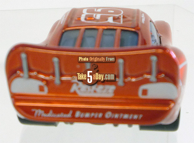 This is an actual Brainstorm 50 giveaway Lightning McQueen. Of course, long time collectors know that a lot of these were offered in 2007 and 2008 with a lot of made up stories* about it but the key thing to know is that it’s actually SPECTRAFLAME RED and not Ransburg Red. The counterfeiters sold it as a “Red Ransburg” which was what they sold but it turns out the Brainstorm was not “Ransburg.”