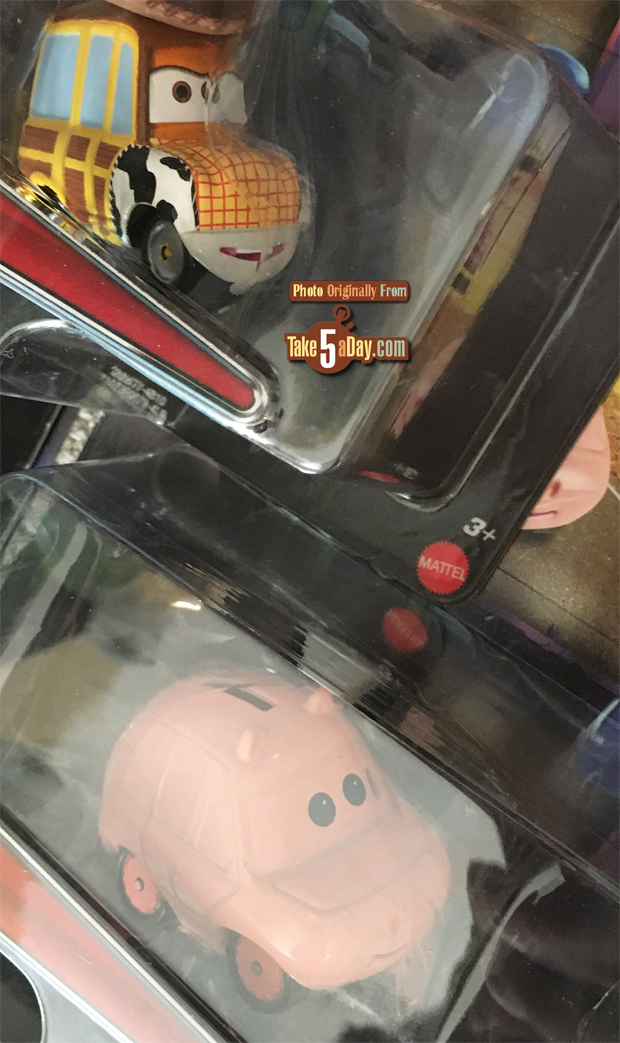 The Pixar Parody diecast CARS are back – most have not been seen since 2008 to 2010-ish … there are 7 releases – Woody, Buzz Lightyear, Hamm, Flik, Mike Wazowski, Sulley, and P.T. Flea